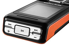 Das gesamte Handy-Design ist auf unmittelbaren Musikgenuss ausgerichtet. So kann man sämtliche Musikfunktionen über die fünf Tasten am oberen Ende des Mobiltelefons bequem steuern. Seine einzigartige Keilform und die trendige Farbgebung in Schwarz/Orange oder Silber/Weiß machen das BenQ-Siemens E61 zum topmodischen Accessoire. Ergonomisch geformt und mit hochwertigem Oberflächen-Finish liegt es ausgesprochen angenehm in der Hand. Hübsches optisches Detail: Der Bereich um die rückwärtig eingebaute VGA-Kamera mit 2fach-/4fach-Digitalzoom sieht aus wie eine Schallplatte.