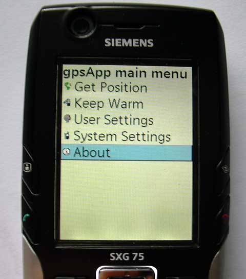 Auf dem SXG75 kann man eine bereits vorinstallierte, geheime GPS-Anwendung starten, mit der man offenbar sehr viele Einstellungen für den GPS-Empfänger direkt vornehmen kann. Die GPS-Anwendung heißt "GPSone" und ist auch in anderen Handys mit Qualcomm-Chipsatz installiert.