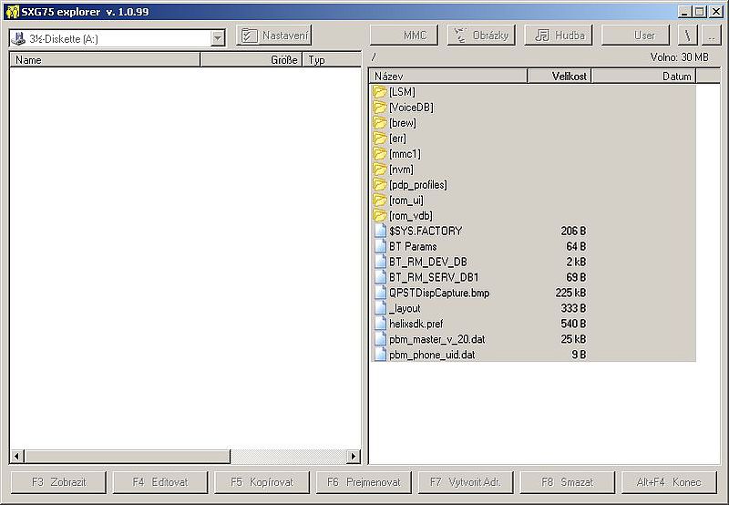Der SXG75 Komunikator kann unter anderem viele Statusinformationen des Handys, wie z.B. Batteriestand, Uhrzeit, IMEI und Netzanzeige anzeigen, es gibt einen Datei-Explorer auf OBEX- und BREW-Basis, der evtl. das bisher einzige funktionsfähige Backup-Programm BitPim ersetzen könnte und auch eine SMS- und Kontaktverwaltung scheint mit an Bord zu sein.