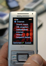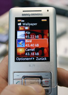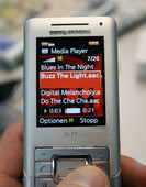 Der Mediaplayer kann übrigens auch bei geschlossenem Slider bedient werden, da alle wichtigen Steuerelemente direkt unter dem Display angebracht sind. Und glücklicherweise lässt sich der Mediaplayer auch in den Hintergrund verbannen, so dass man während der Musikwiedergabe andere Funktionen des Handys nutzen kann. Die Lautstärke lässt sich mit insgesamt 15 Stufen sehr feingranular regeln und bei einem ankommenden Anruf wird die Musikwiedergabe angehalten und nach dessen Ende an der gleichen Stelle problemlos fortgesetzt. Leider ist auch beim EL71 wie schon bei den bisherigen Siemens-Handys kein Equalizer mit Klang-Presets dabei, dafür gibt es aber erstmals eine Shuffle-, Repeat- und Intro-Funktion, ID3-Tags werden (inkl. Sonderzeichen) problemlos dargestellt und auch Playlists werden unterstützt. Durch die Möglichkeit der Speichererweiterung durch microSD-Karten können auch größere Musiksammlungen problemlos mit dem EL71 genutzt werden. Eine microSD-Karte mit 1GB Kapazität wurde in unserem Test problemlos erkannt.