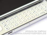 Im aufgeschobenen Zustand kommt dann die vollwertige QWERTZ-Tastatur zum Vorschein. Die Tasten sind in 3 Zeilen angeordnet, direkt links neben den Tasten ist das 5-Wege Steuerkreuz zur Navigation zu finden. Dies ist enorm praktisch da man das Gerät so auch fast komplett ohne Touchscreeneingaben bedienen kann.