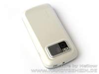 Eines sei direkt vorweg gesagt, das Gehäuse des Nokia N97 ist trotz Kunststoff stabil und wirklich gut verarbeitet. Die ausgewählten Materialien sorgen zwar nicht für ein edles Materialgefühl wie es die aktuelle Eseries aus selbem Haus vormacht, doch insgesamt kann sich das Nokia N97 trotz Kunststoffgehäuse noch sehr gut sehen lassen. Es gehört auf jeden Fall zu den besseren Geräten mit Kunststoffgehäuse. Was die Farbgebung angeht so ist das Gehäuse des vorliegenden Gerätes mit einem schmalen metallischen Chromrand rund um die Gehäusefront versehen und das Gehäuse selbst ist komplett in weiß eingefärbt (es ist in 2 Farbvarianten erhältlich: weiß oder schwarz). Die Komponenten selbst sind sauber verbaut und auch der Akkudeckel sitzt straff und ohne klappern. Das vorliegende Neugerät ist wie gesagt wirklich sauber und stabil verarbeitet, kein Wackeln oder Knarzen soweit das Auge reicht.