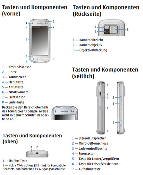 - microUSB Anschluss (Wechseldatenträger oder PC Suite Modus)