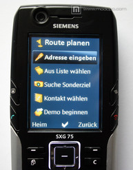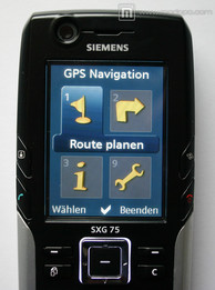 Die GPS-Navigation ist das herausragende Merkmal des SXG75, weil noch kein anderes Handy bisher einen eingebauten GPS-Empfänger besitzt. Eine Software von VDODayton ist bereits vorinstalliert, allerdings werden die Routendaten immer kostenpflichtig über eine Onlineverbindung bezogen. Wer nur gelegentlich navigiert, kommt hier aber günstiger weg als beim Kauf eines GPS-Pakets mit GPS-Maus und einer Software, die das komplette Kartenmaterial auf einer Speicherkarte liegen hat. Ein weiterer Vorteil der Online-Lösung beim SXG75 ist, dass die Routendaten immer tagesaktuell sind und bspw. auch Staus und Umleitungen mit eingeplant werden können.