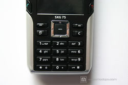 Das SXG75 ist auf den ersten Blick ein ganz schön großer Brocken. Es ist mit einer Größe von 111x53x20mm und einem Gewicht von 134 Gramm sogar noch ein bisschen größer als das Siemens SX1, das ja auch schon einen hohen "Hosentaschen-Beulen-Faktor" hat. Mich stört das zwar nicht, aber so ein voluminöses Handy dürfte vor allem Käuferinnen nicht zusagen, außer das Handy verschwindet immer in der Handtasche.