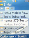 Neben einem Instant Messanger unterstützt das SXG75 auch SMS/MMS und E-Mail mit allen schon von der letzten Handygeneration bekannten Features. Es werden sowohl POP3, als auch IMAP-Server unterstützt und man kann auch bei POP3 nur die E-Mail-Header herunterladen lassen und dann selektiv die einzelnen Mails lesen, um Traffic-Kosten zu sparen.