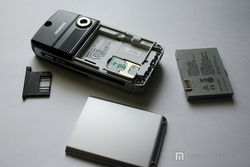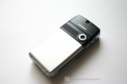 Der RS-MMC-Speicherkartenslot ist ein wenig anders als bisher eingebaut. Die Karte wird nicht mehr direkt in das Gerät hinein geschoben, wie bspw. beim S65 oder SX1, sondern erst in eine Plastikvorrichtung gelegt, die komplett aus dem Handy herausgenommen werden muss und gleichzeitig als Außenabdeckung fungiert. Der Kartenslot kann sich auch nicht mehr so leicht wie beim SX1 versehentlich in der Hosentasche öffnen, denn zum Öffnen muss man mit einem spitzen Gegenstand auf eine bestimmt Stelle drücken. Ein Schlüssel ist dafür auch gut geeignet. Das Austauschen der Speicherkarte im laufenden Betrieb ist kein Problem und wird von der Software unterstützt und es können bis zu 1GB große Speicherkarten im SXG75 verwendet werden. Leider dauerte es eine halbe Ewigkeit, wenn man Dateien vom Telefonspeicher auf die Speicherkarte verschieben wollte. Für eine MP3-Datei normaler Länge genehmigte sich das SXG75 mehr als 10 Minuten. Aber zum Glück gibt es ja Kartenlesegeräte für den PC, mit denen man die Karte schneller mit Musik betanken kann.
